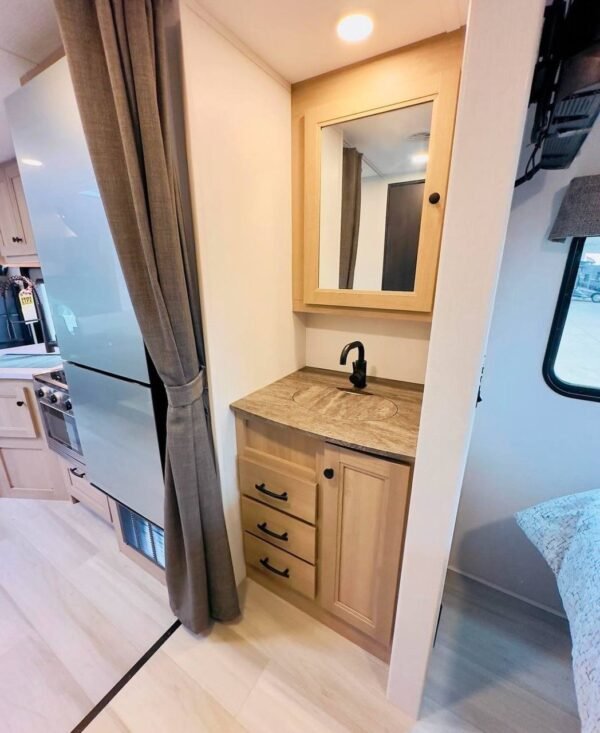 – Sink with storage for toiletries.